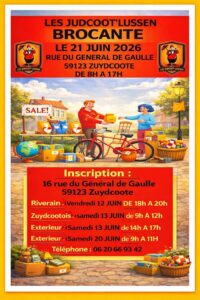 Déchèterie Mobile La Déchèterie Mobile revient ! Mercredi 27 mai 2026 De 13h30 à 18h30 Parking de la salle Robert Merle Sont acceptés : • Encombrants • Électroménagers • Déchets dangereux (soude, acide, chlore, peinture…) •... lire la suite Concours de pêche – La Bourriche Zuydcootoise ... lire la suite Brocante Judcoot’Lussen ... lire la suite 12suivantdernier Catégories 3ème âge A la une Affaires Sociales Bourses et brocantes Conseil municipal Enfance Evénements Expositions et festivals Festivités Jeunesse Jeux et loto Mémoire Non classé Spectacles et soirées Sports et loisirs Travaux Vie citoyenne et associative Vie pratique Articles récents Grand jeu de piste Bulle de romans La suite Déchèterie Mobile La Déchèterie Mobile revient ! Mercredi 27 mai 2026 De 13h30 à 18h30 Parking de… La suite Concours de pêche – La Bourriche Zuydcootoise La suite