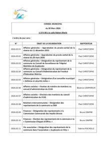 Ordre du jour – Conseil municipal du 30 mars 2026